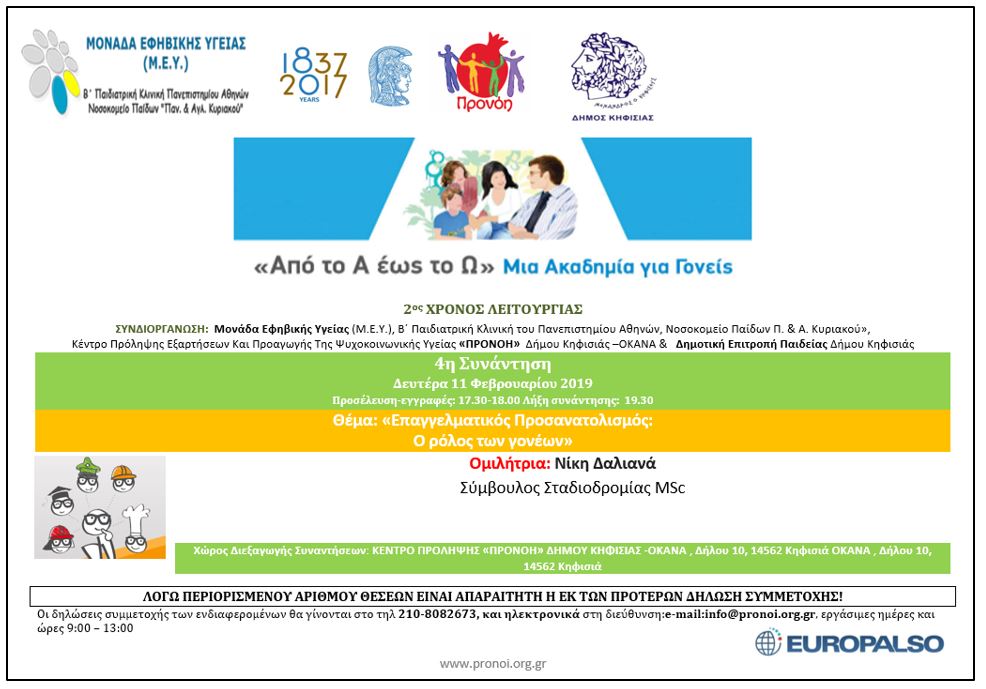 «Από το Α έως το Ω» Μια Ακαδημία για Γονείς – 2ος χρόνος Λειτουργίας By admin Published 20 Φεβρουάριος 2019 Χωρίς κατηγορία